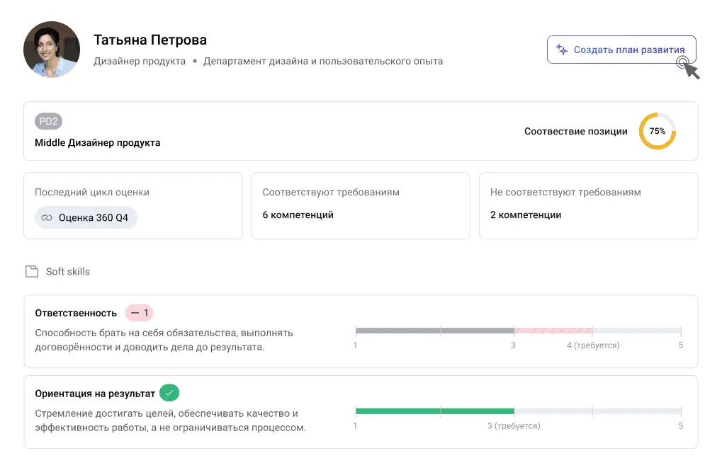 Грейд → Оценка → План развития